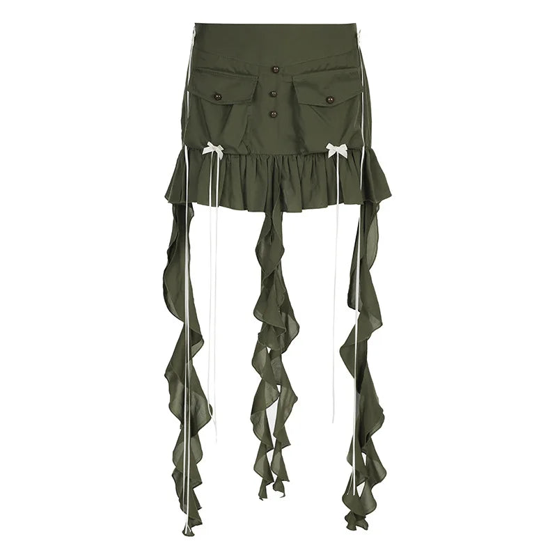 Splice Folds Mini Skirt For Women Pocket High Waist Bnadage Skirts Womens Party Casual Lace Up Slim Skirts Ladies