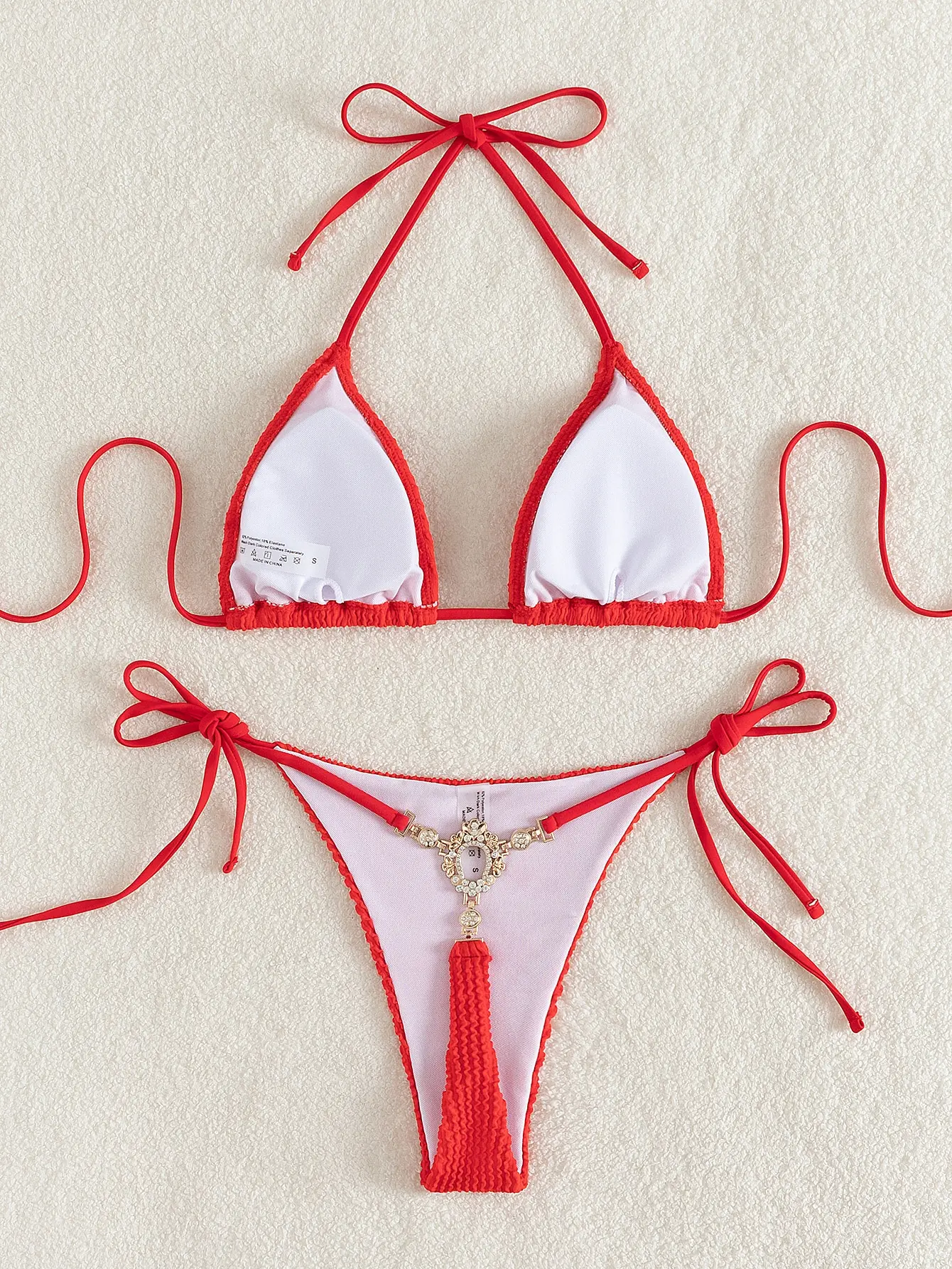 Textured Halter Triangle Tie Side Bikini Women Swimsuit Swimwear Female Sexy Bathing Swimming Suit Summer Beachwear Bathers