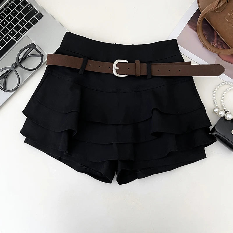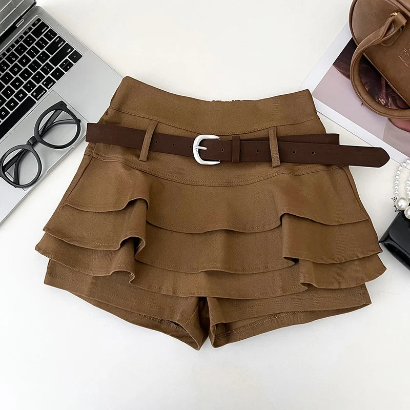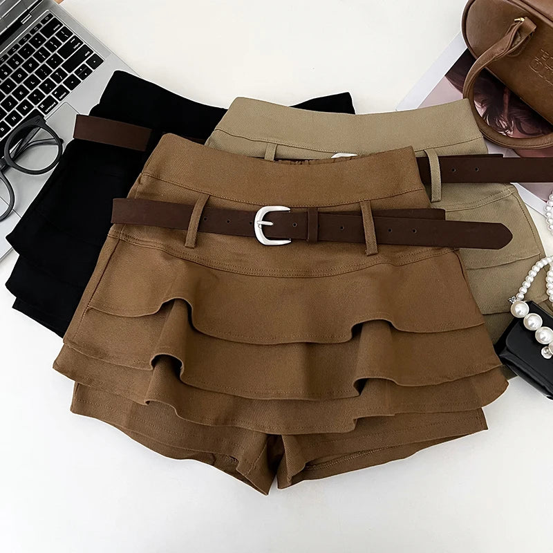 Tiered Ruffle Mini Skort with Belt Built-in Shorts High Waist A-line Short Skirts Women Teen-girl Summer Y2K Beach Vacation