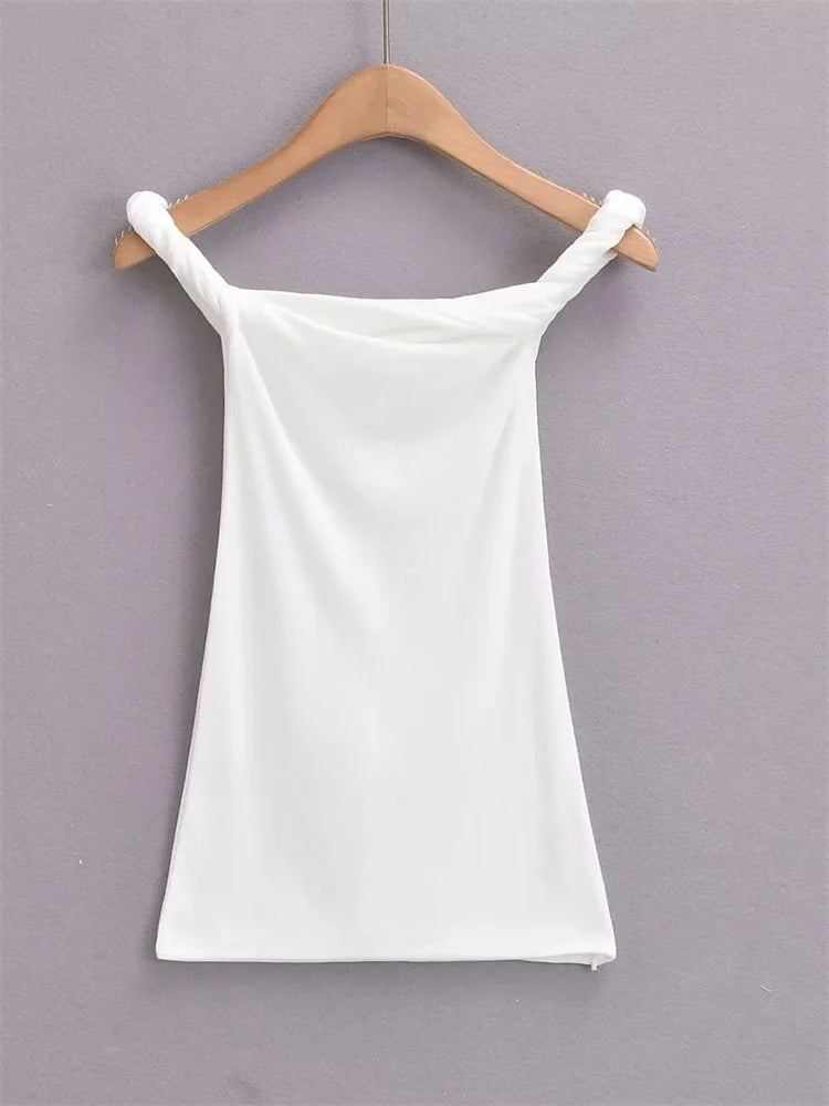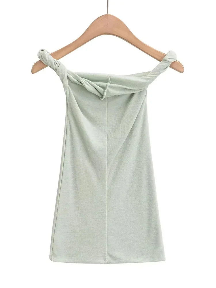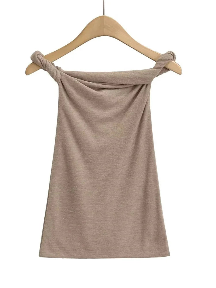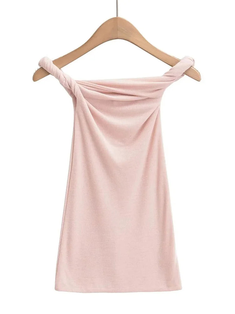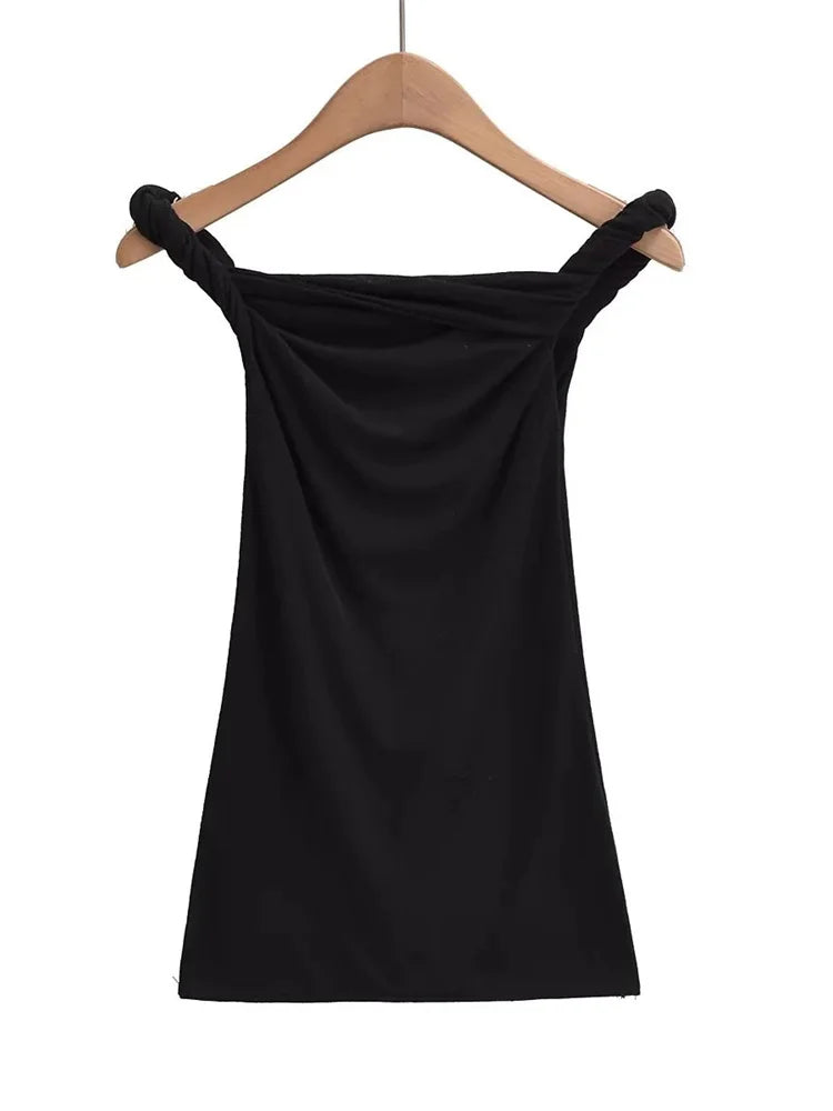 Twist Off-Shoulder Slim T-shirt Solid Patchwork Elegant Backless Women's Top Y2k Top Pleated Casual Strapless Pullover Tee