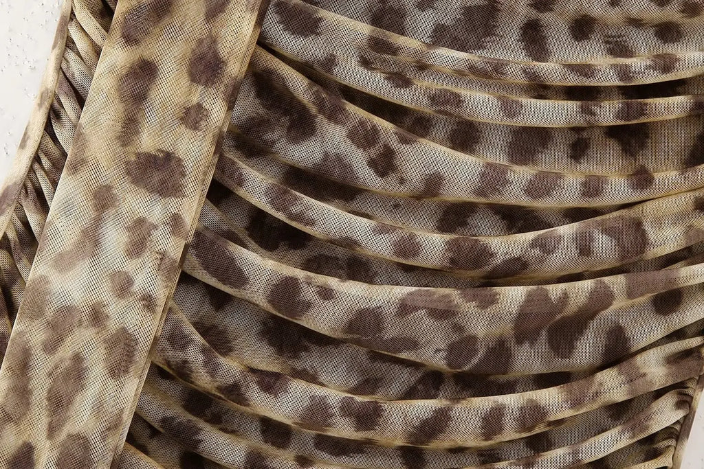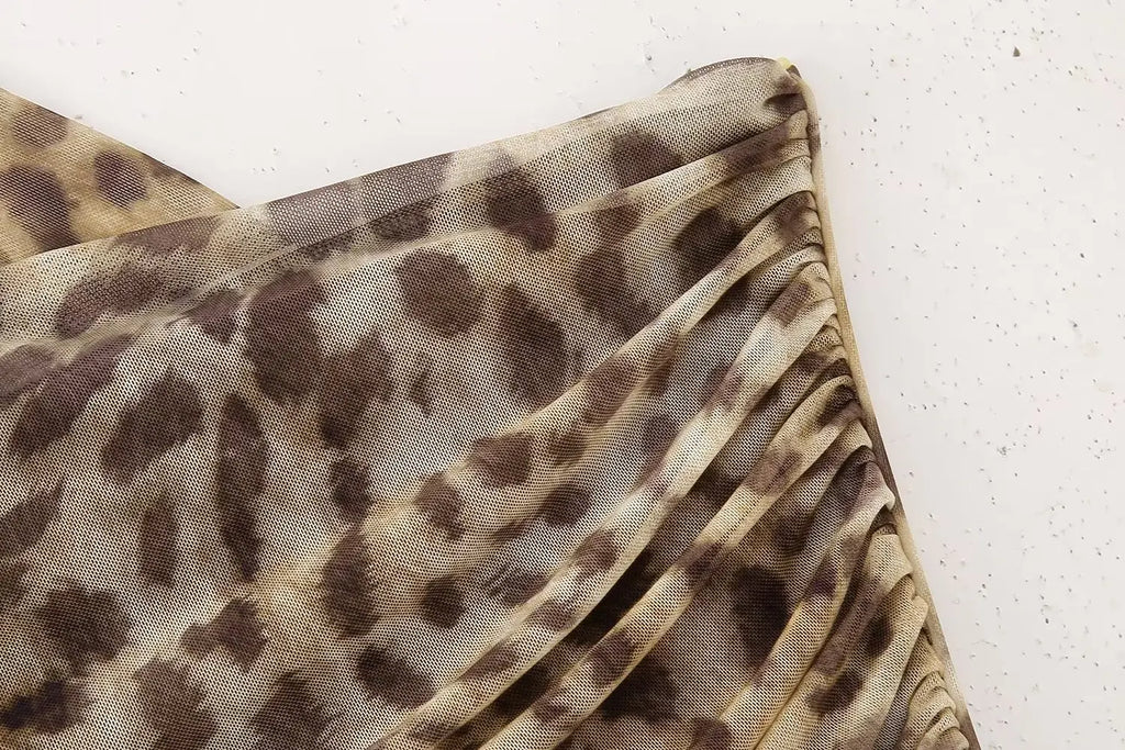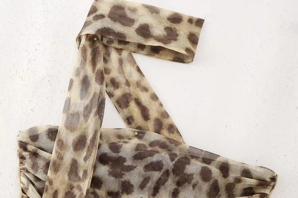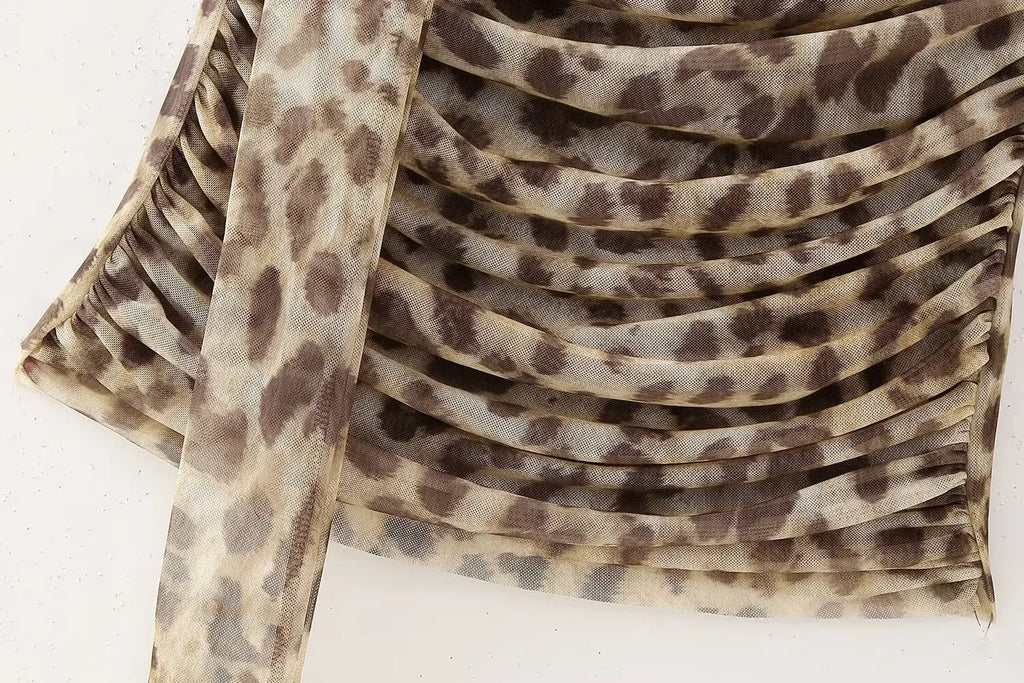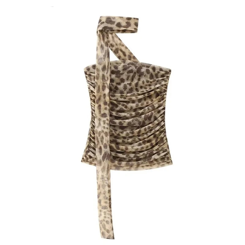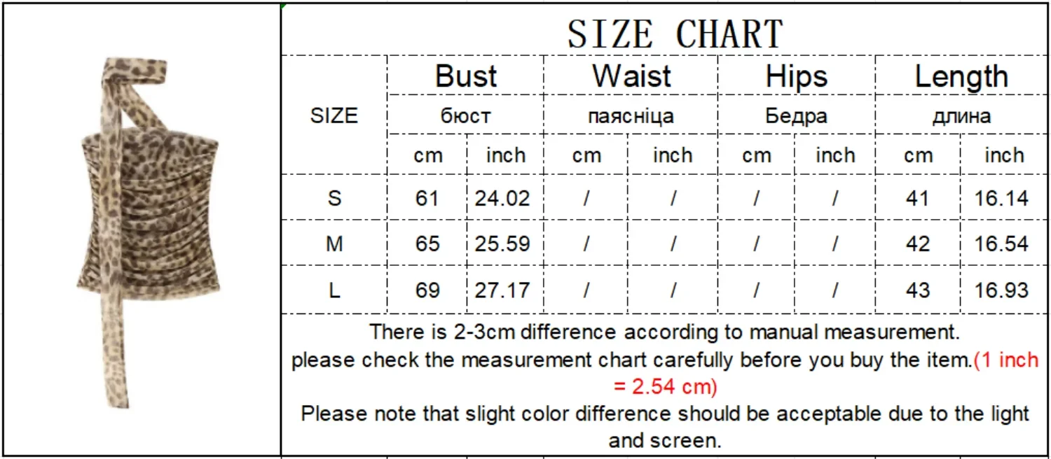Leopard Print Tulle Tops for Women Ruched Crop Top Woman Sexy Backless Corset Top Women Summer Beach Halter Top Female
