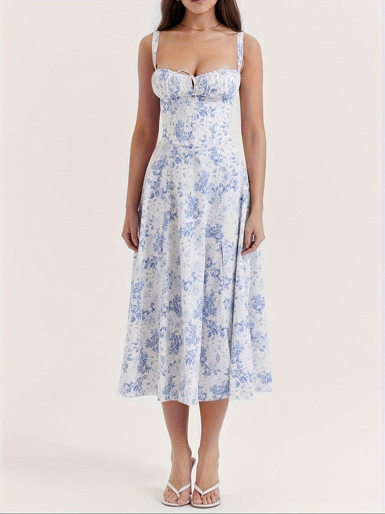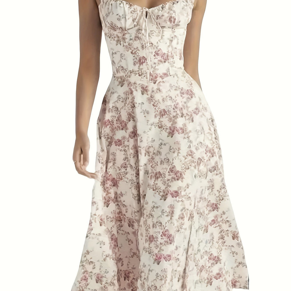 [Trendy Ruched Tie Front Cami Dress] Milkmaid Dress, Ditsy Floral Dress, Corseted Dress, Midriff Waist Shaper, Trendy Women's Ruched Tie Front Split Thigh Cami Dress Sleeveless Womenswear Comfortable