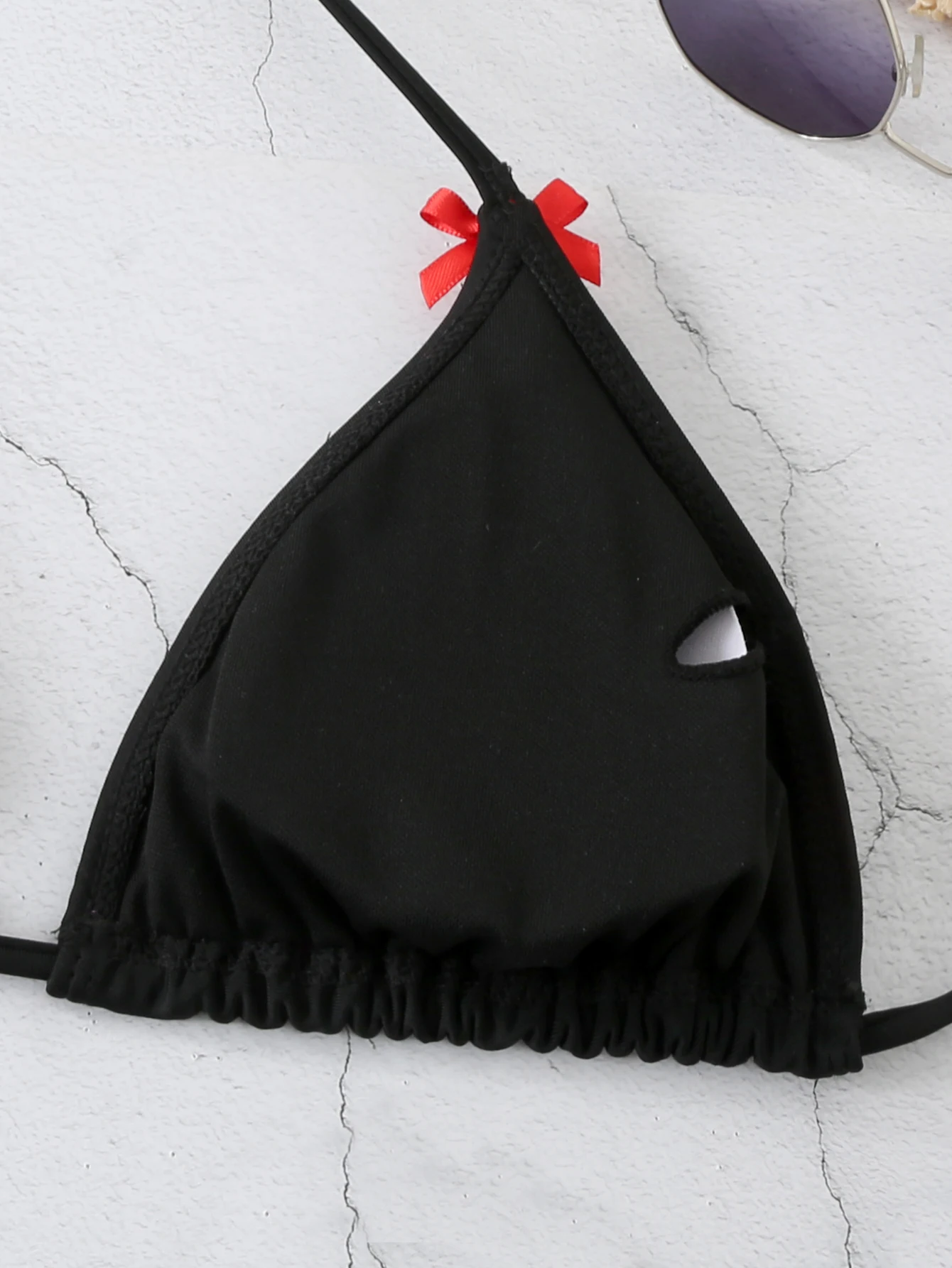 Triangle String Bikinis Halter Swimsuit Women Black Sexy Swimwear Female Bathers Bathing Swimming Swim Suit Beachwear
