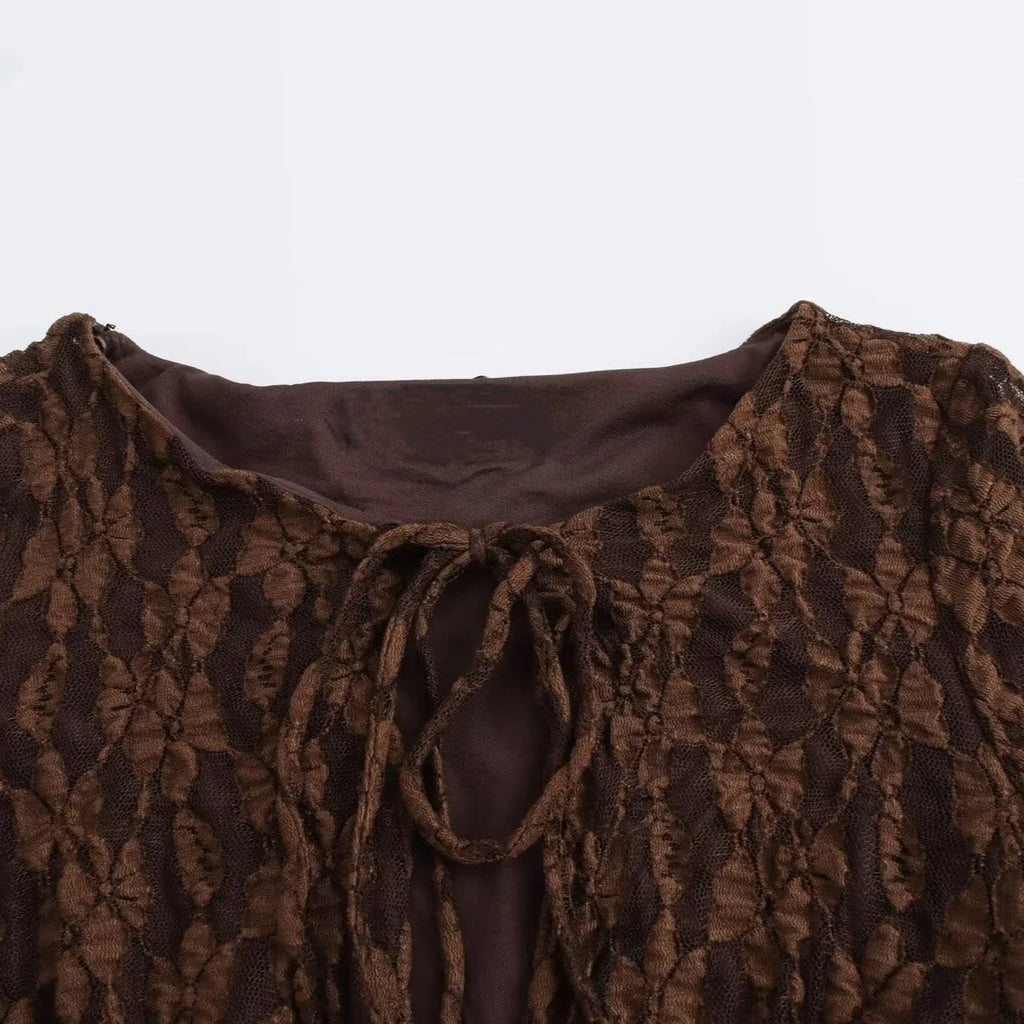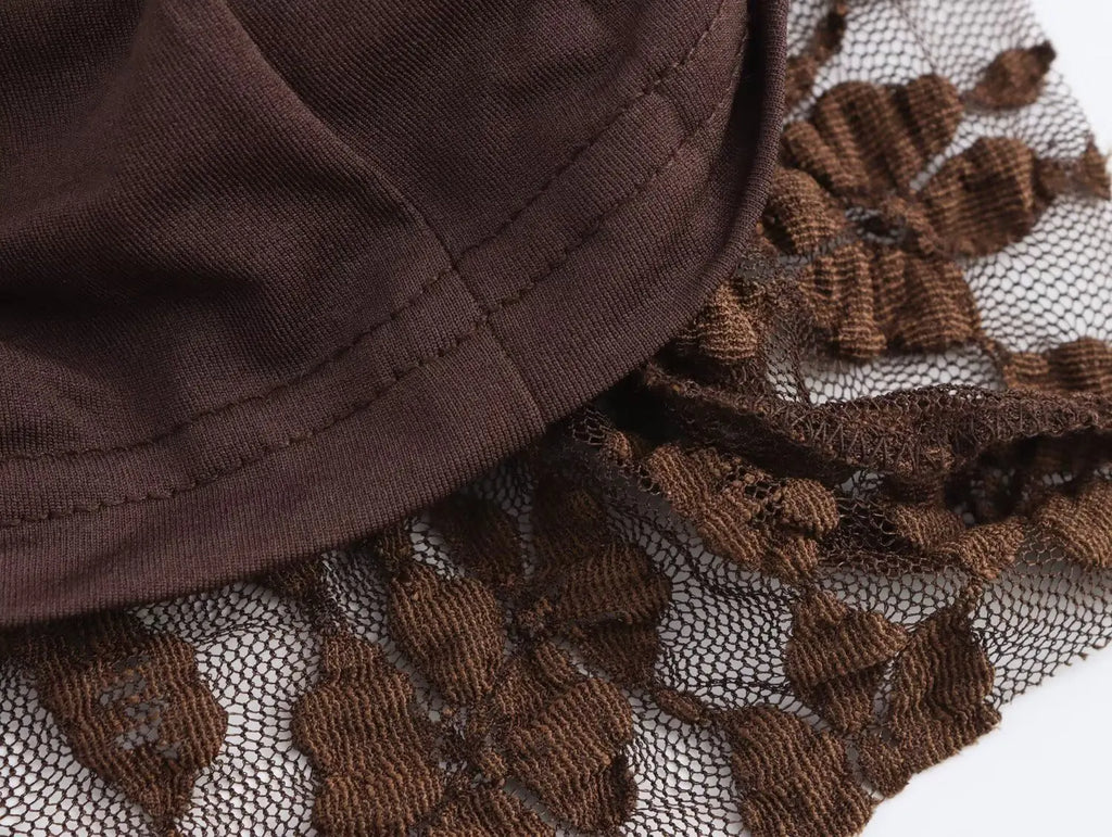 Velvet Patchwork Mesh Long Dress For Women Round Neck Long Sleeve Women Dress Brown Vintage Spring Autumn Tight Dresses New