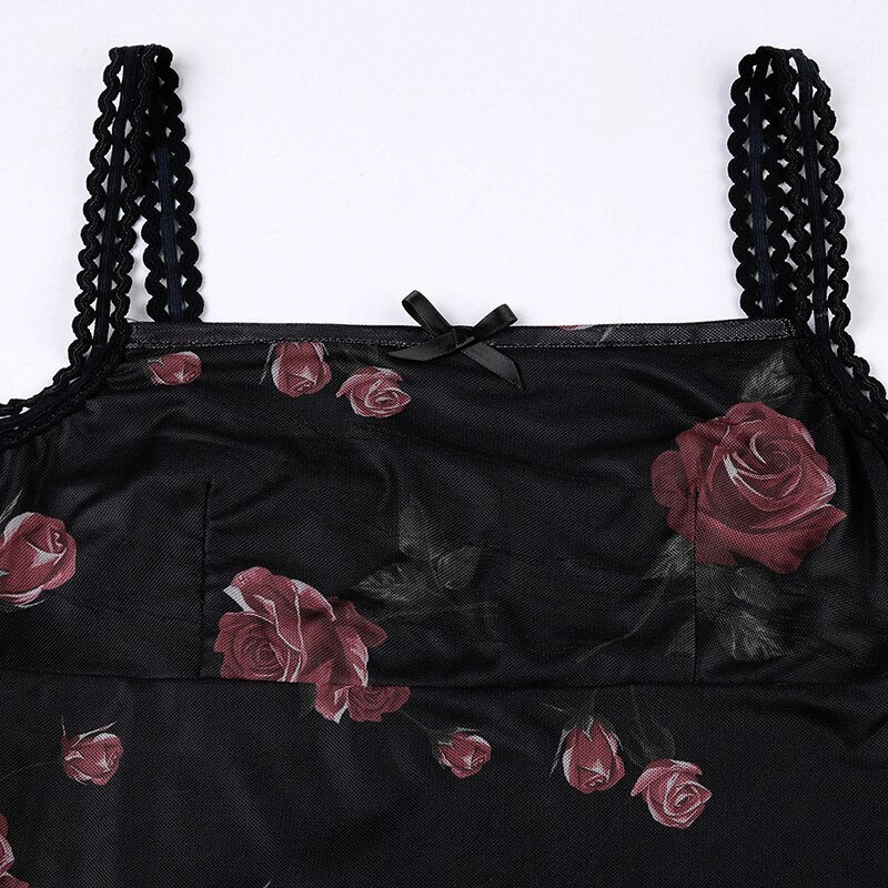 Floral Mesh Halter Sleeveless Dress