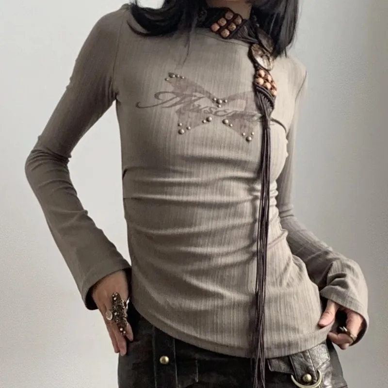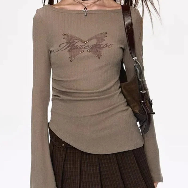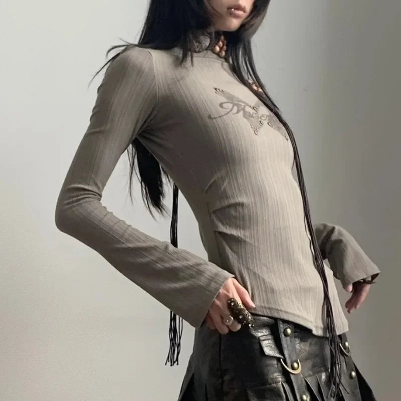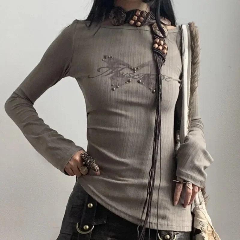 Vintage Fairy Print All Match Summer Women Clothing Personality Y2k Aesthetic Harajuku Crop Top American Sexy Slim Lrregular Tee
