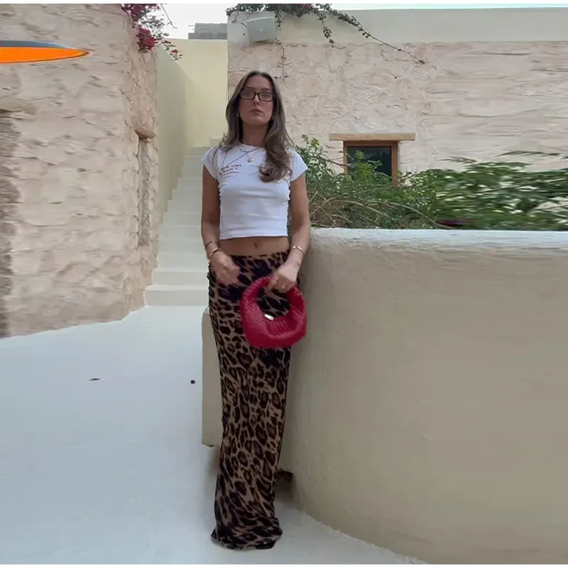 Vintage Leopard Print Maxi Skirt Sexy Hip Package High Waist Party Club Skirts Spring Summer Female High Y2K Streetwear