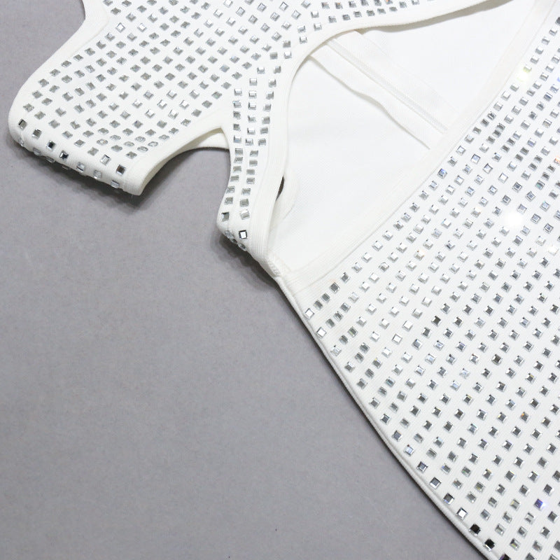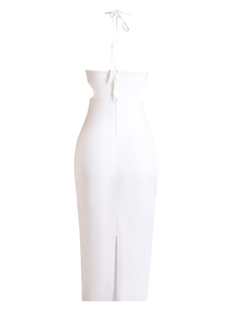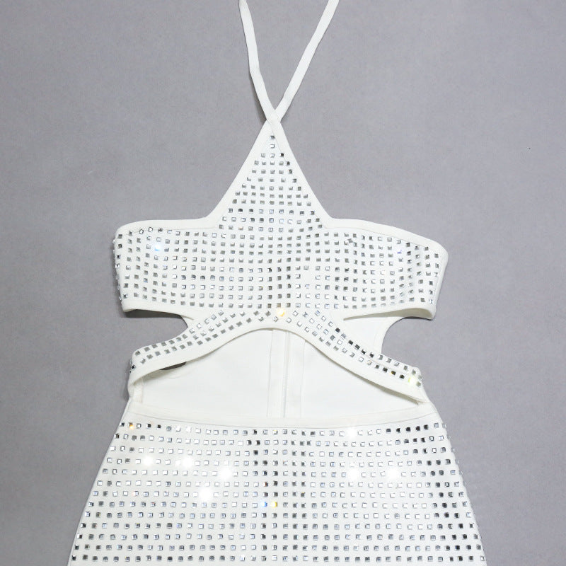 White Halter Diamond Setting Bandage Dress