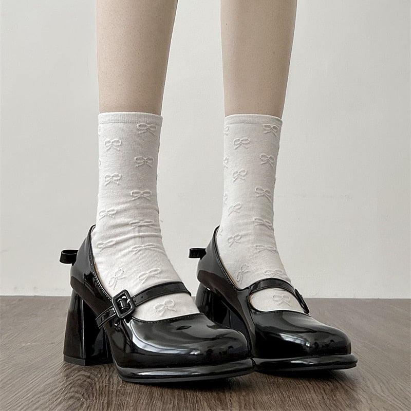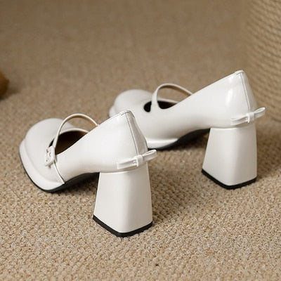 Woman Pumps Casual Shoes For Women Round Toe Heeled Shoes Mary Jane High Heels Shoes Leather Elegant Ladies Shoes Lolita