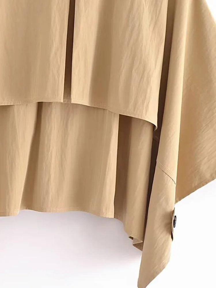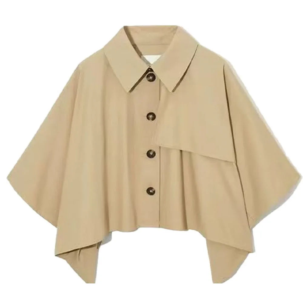 Women Summer New Fashion Standard Short Coat Vintage Lapel Button Accessories Chic Cape Coat Mujer