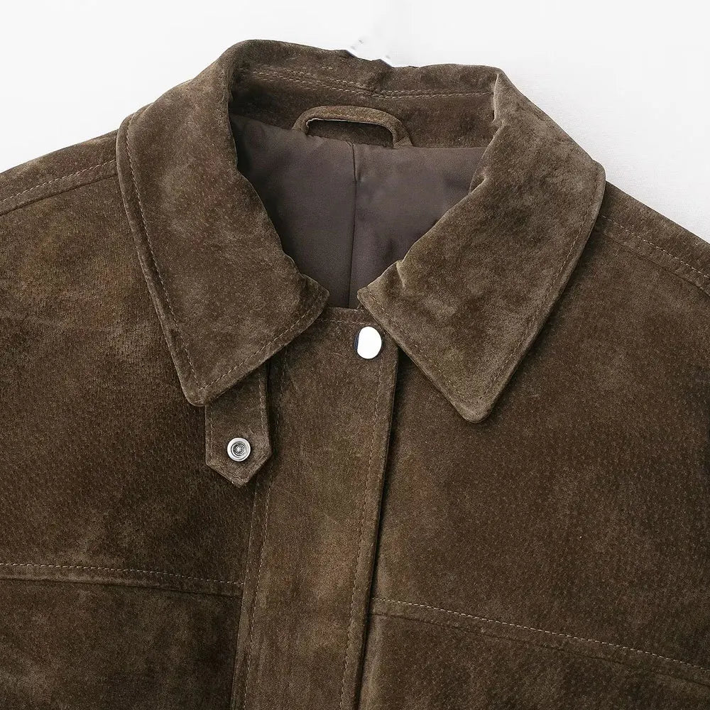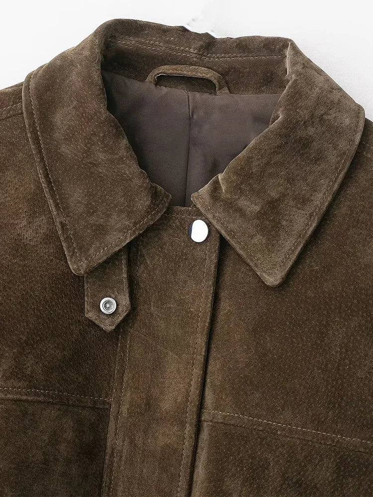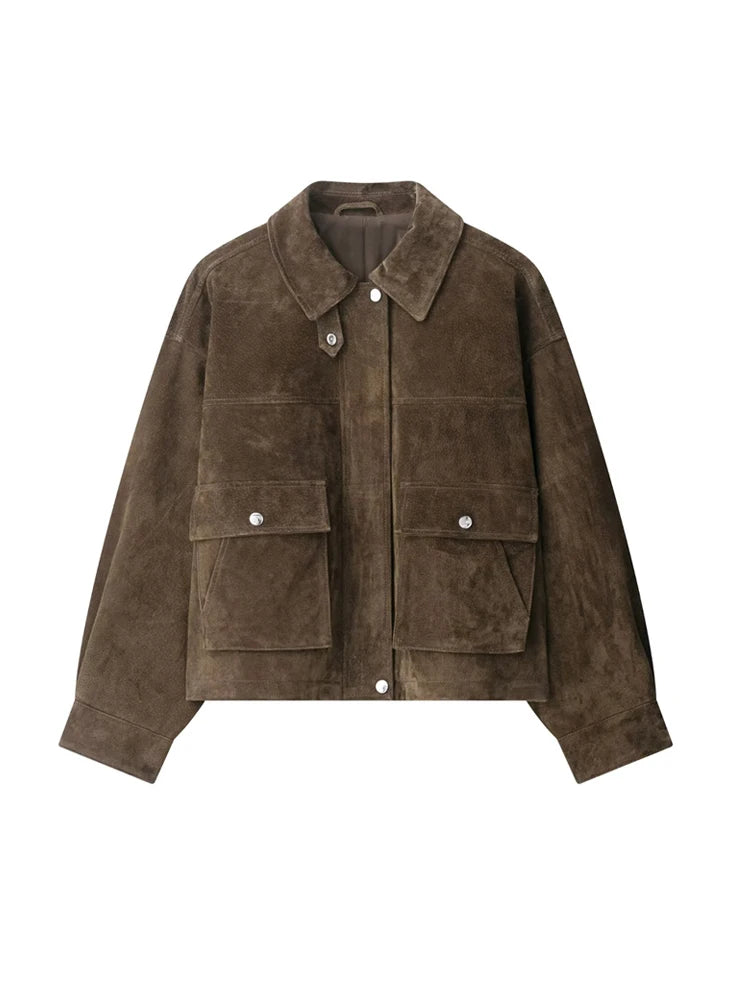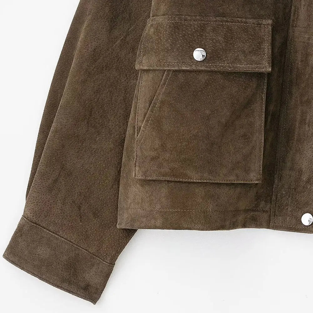Women Fashion Faux Leather Bomber Jacket Coat Long Sleeve Front Patch Pockets Female Outerwear Chic Tops