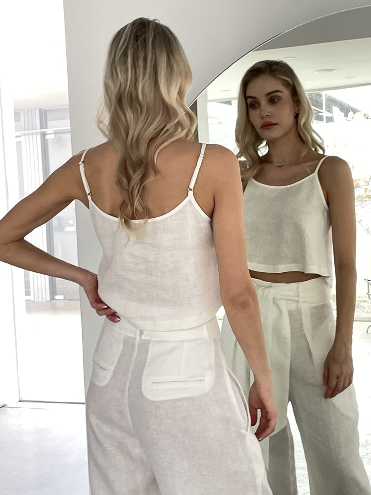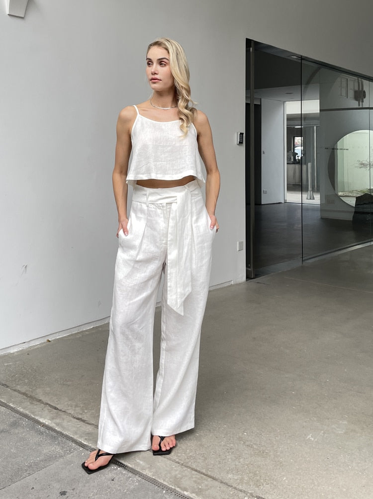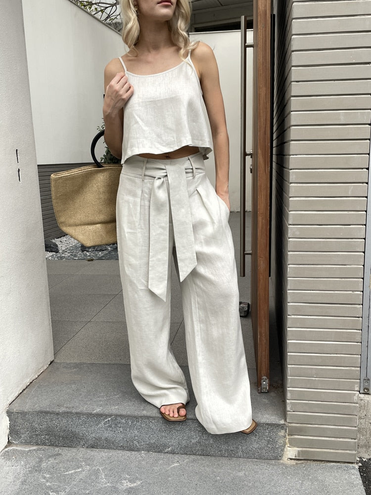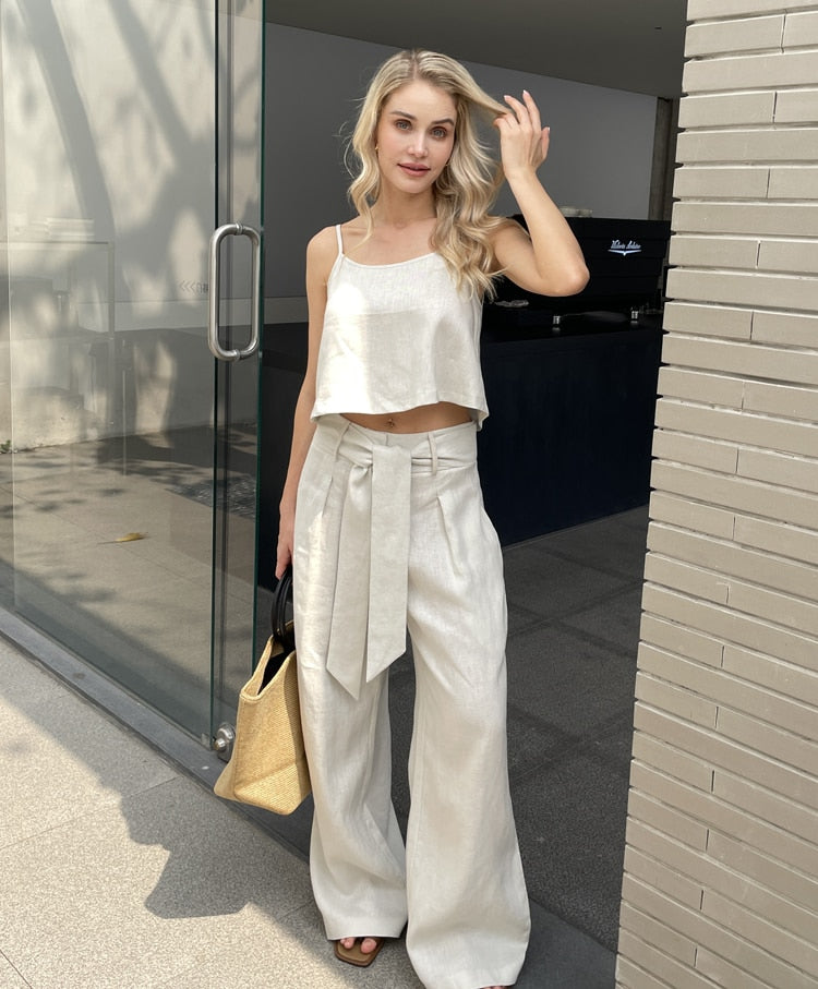 Women Fashion Linen Top Pants 2 pcs Sets Summer Sets