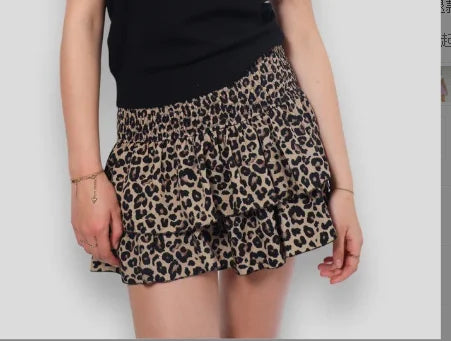 Women leopard print mini skirt, high waisted elastic clothing, A-cut, Y2K style, summer