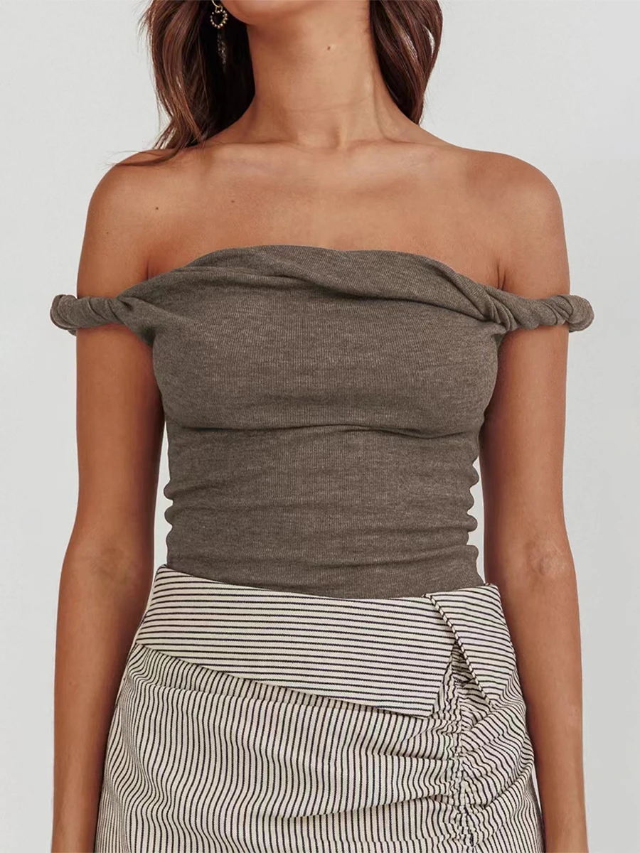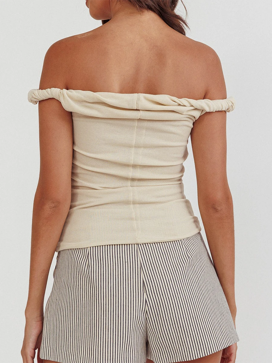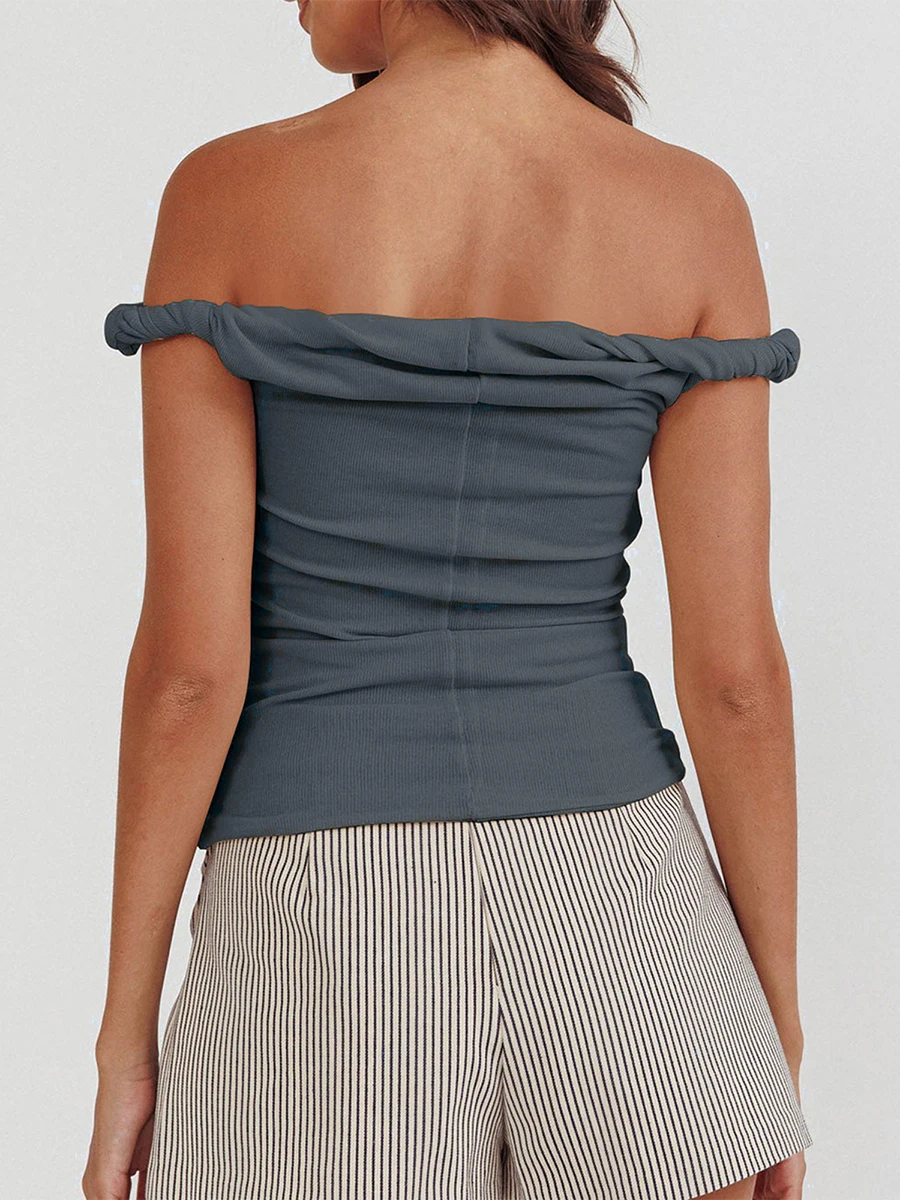 Women Off Shoulder Top Sleeveless Twist Strap Tank Tops Slim Fit Stretch Ruched Crop Top Casual Slim Fit Shirts Streetwear