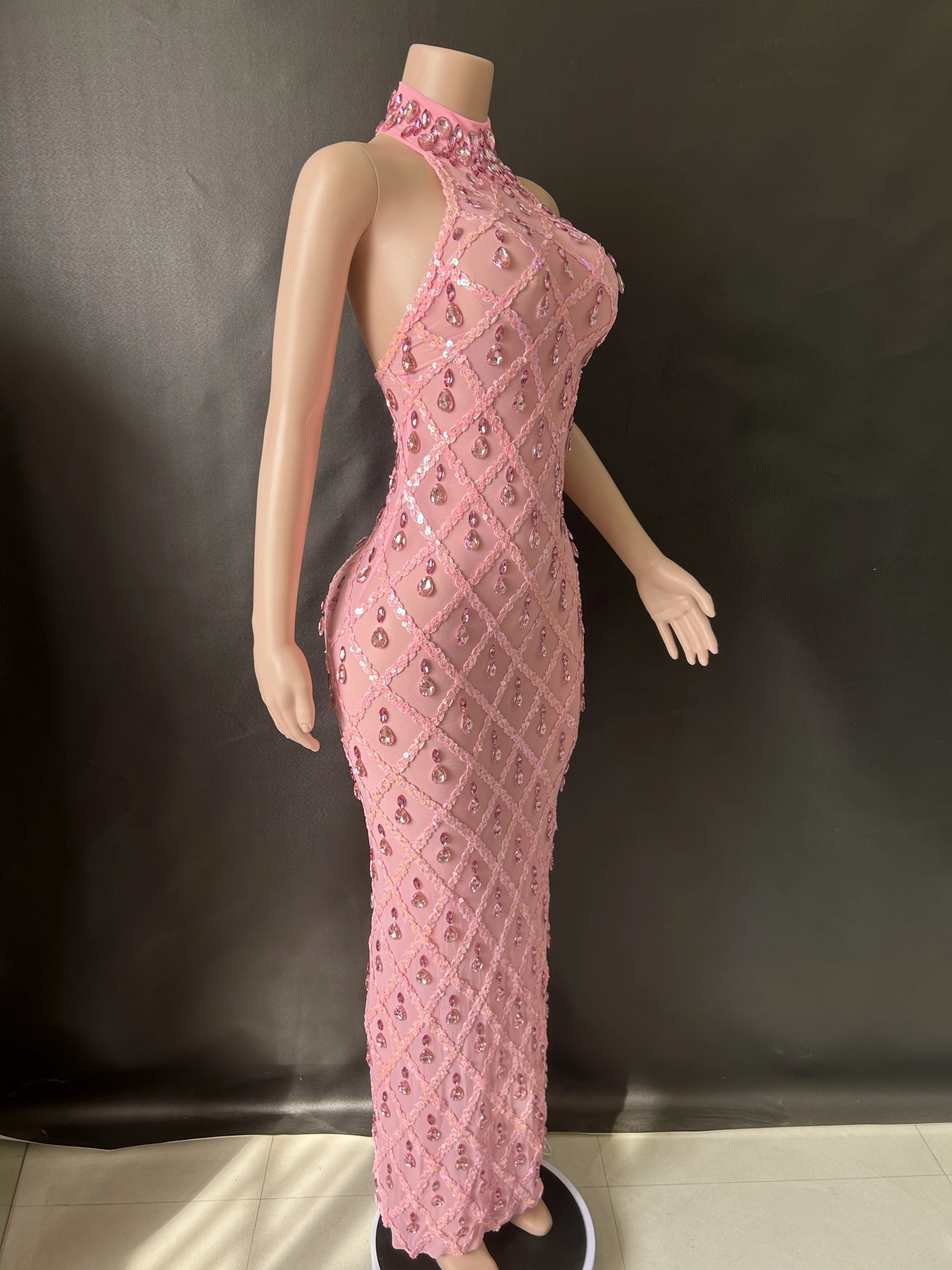 Women Sexy Stage Shining Rhinestone Sequins Dress Evening Prom Birthday Dress Transparent Performance Singer Club Host Dress 7G