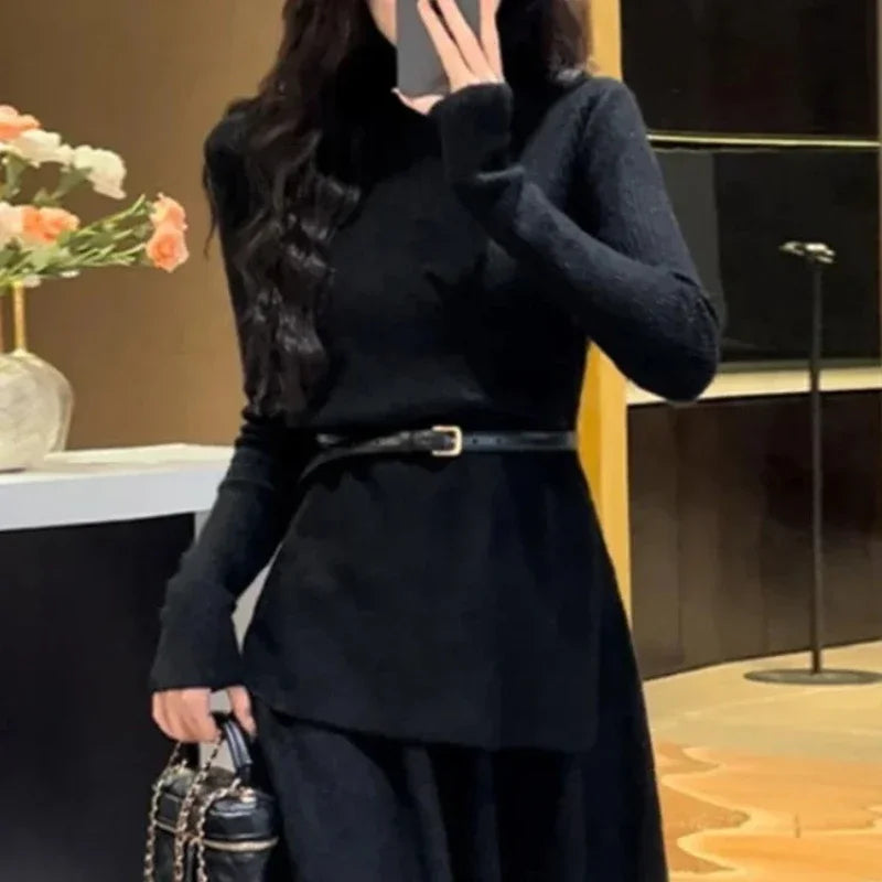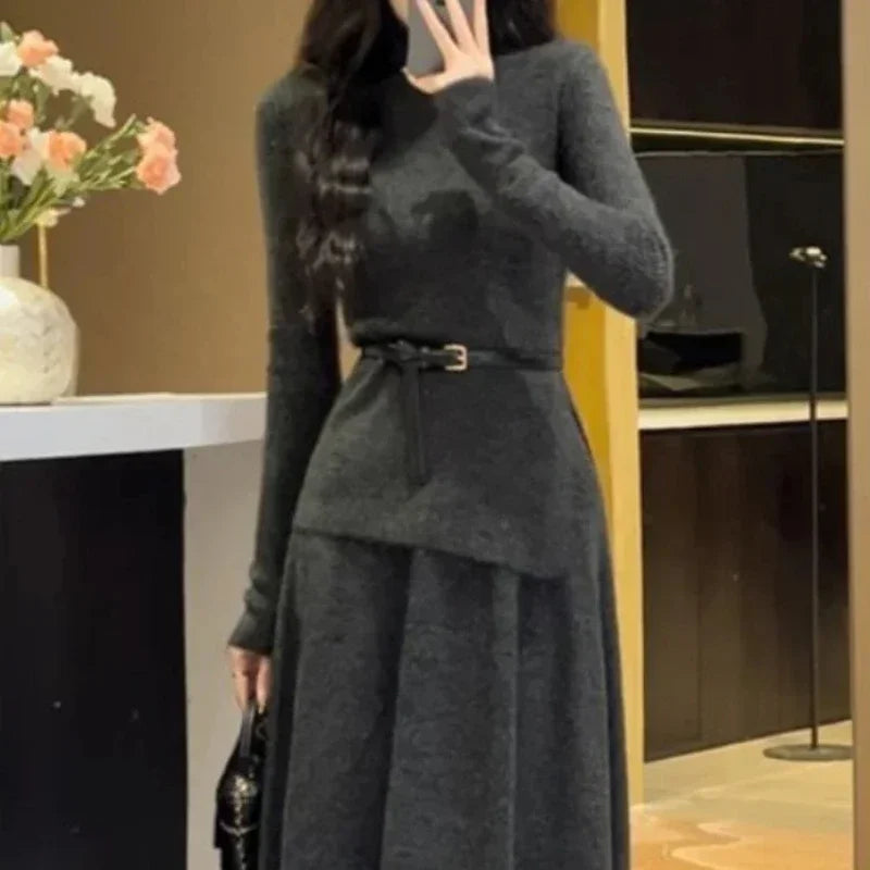 Women's Crochet Dresses New In High Quality Luxury Autumn and Winter Female Knit Dress Loose On Sales Long Sleeve Korean Fashion
