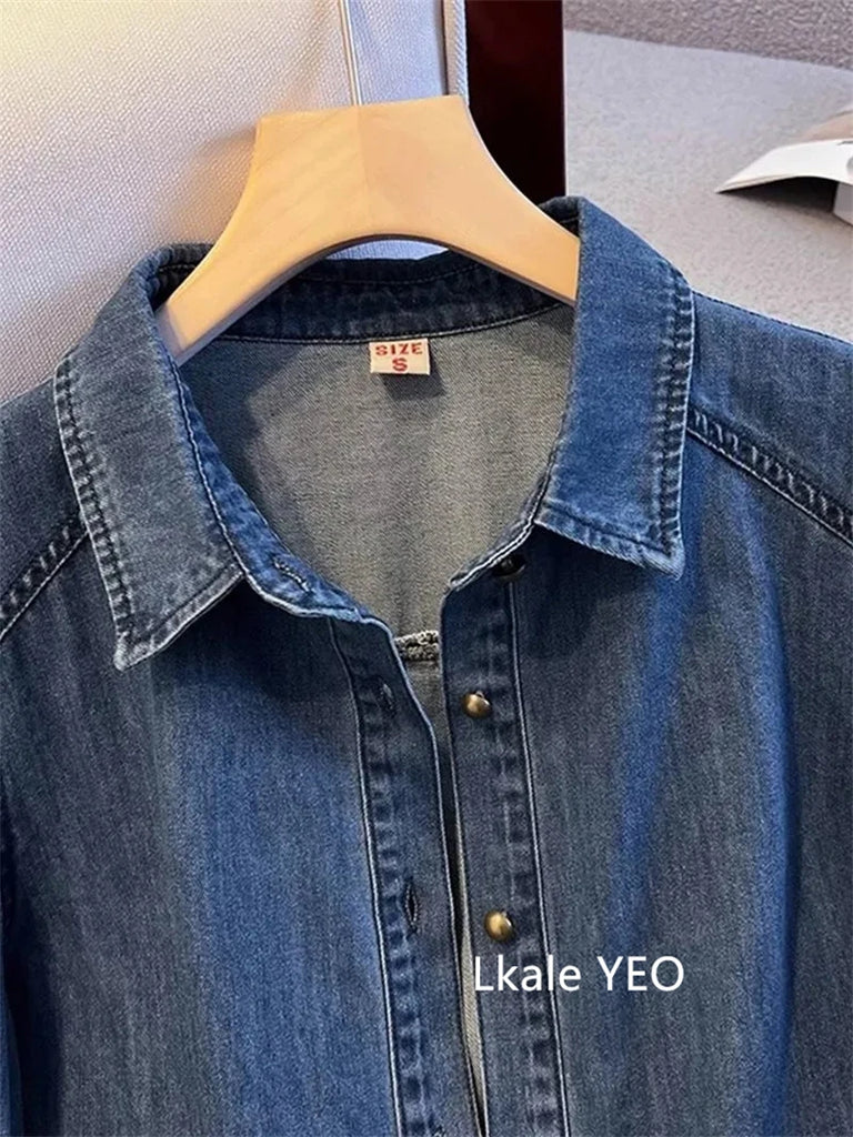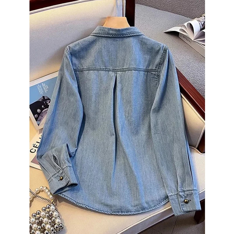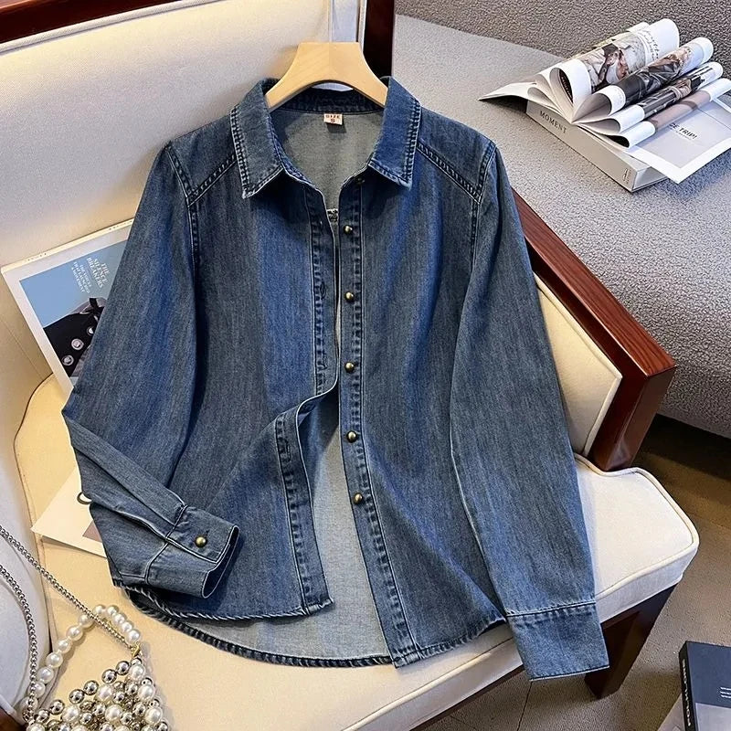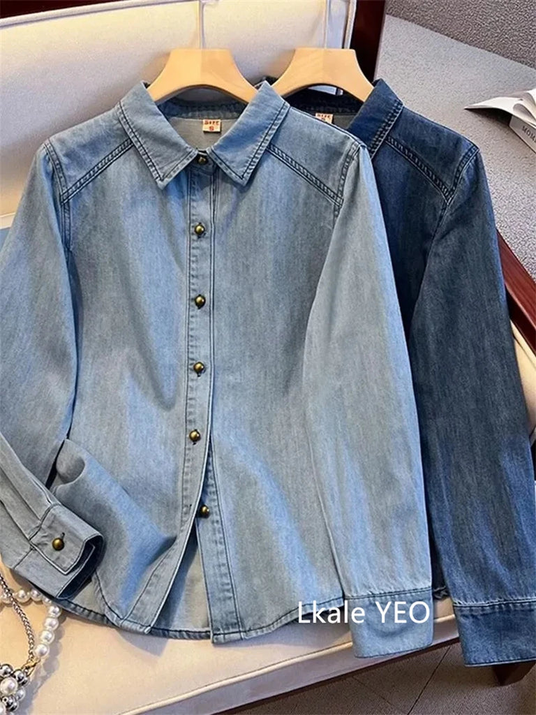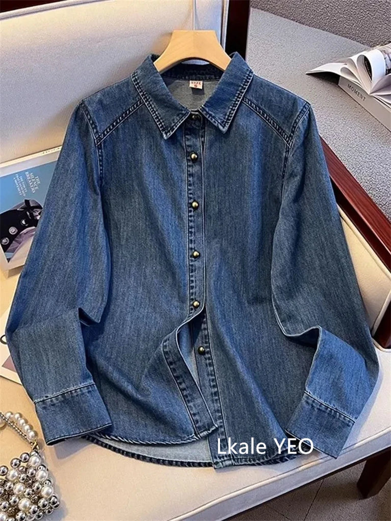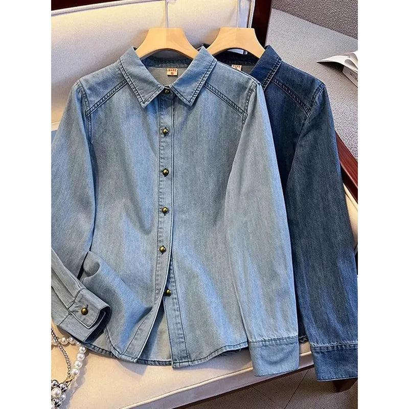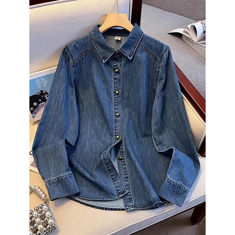 Women's Denim Shirt 2025 Spring Summer Loose Comfortable Ladies Cowboy Tops Blue Retro Be All-match Lady Elegant Blouse