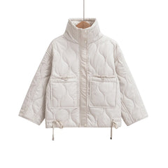 Women's Fashion Autumn/Winter Quilted Padded Jacket Women Vintage Stand Neck Pocket Zipper Casual Female Outerwear