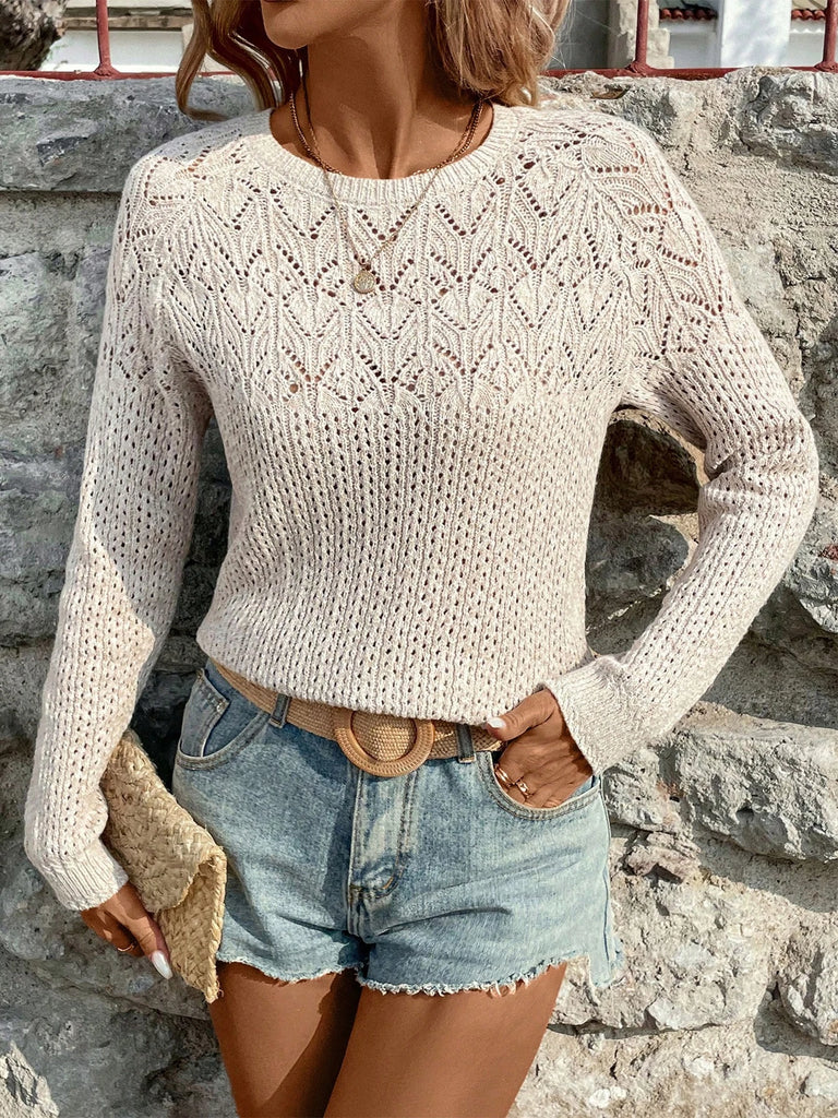 Women's Solid Color Long Sleeve Knitted Sweater Hollow out Design Spring Summer Fashionable Comfortable Knitwear