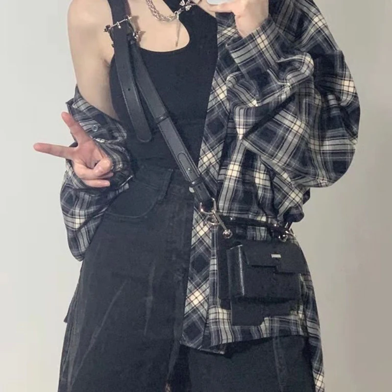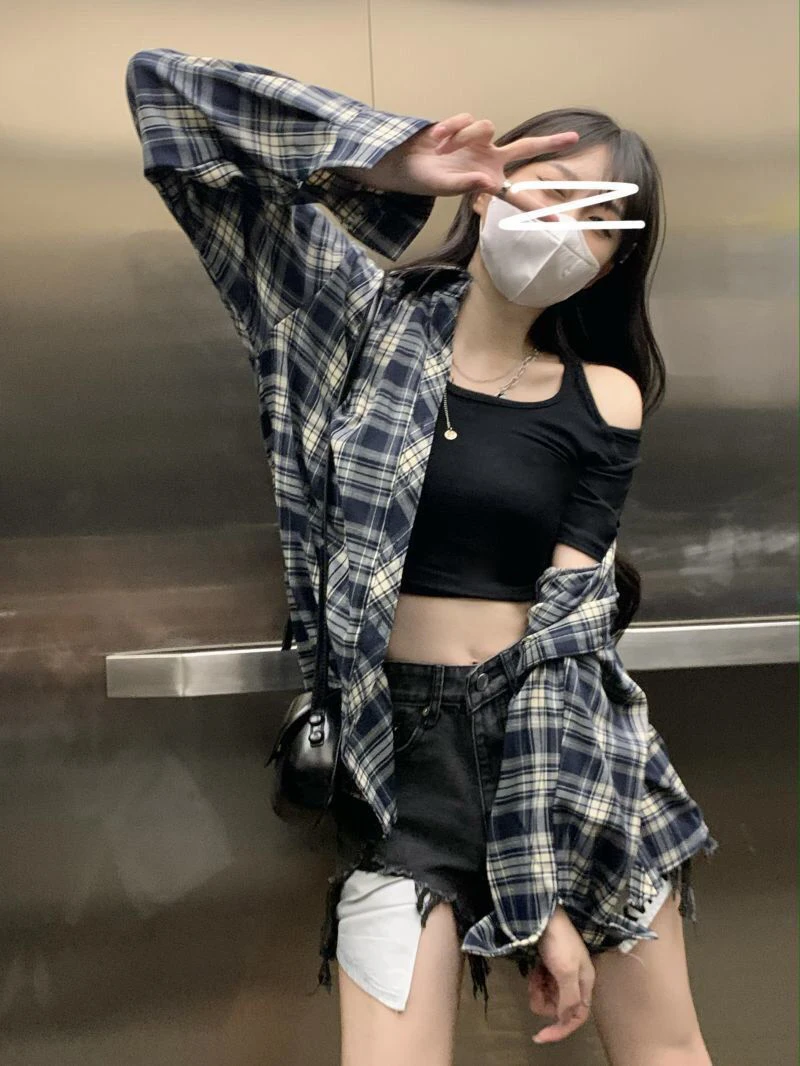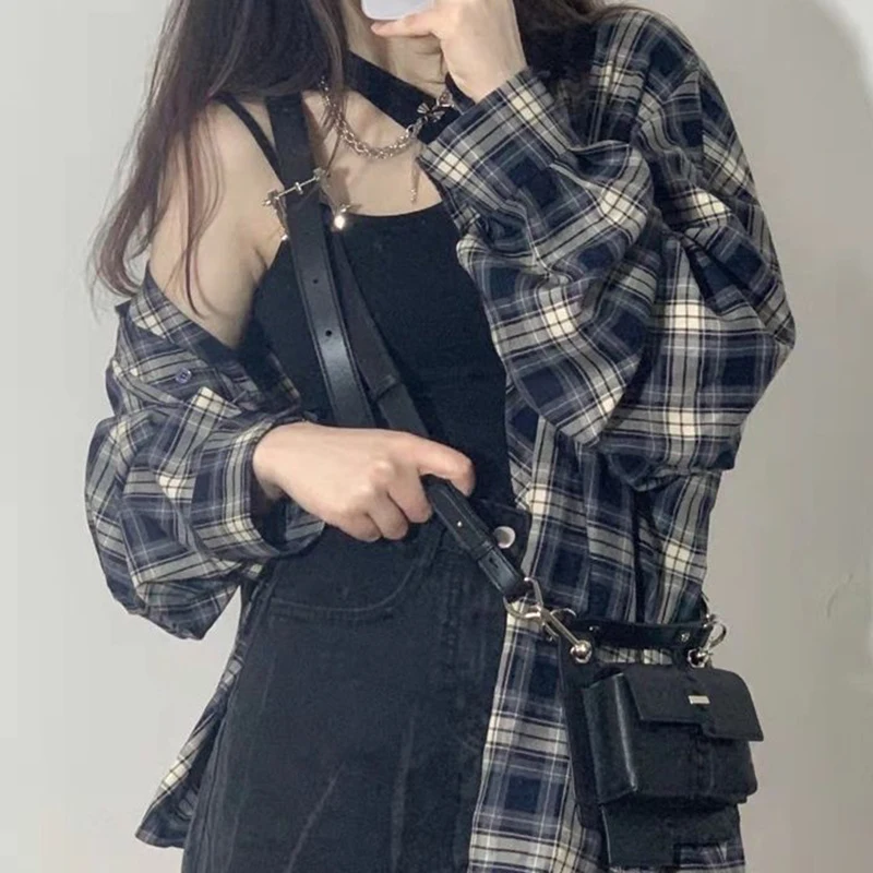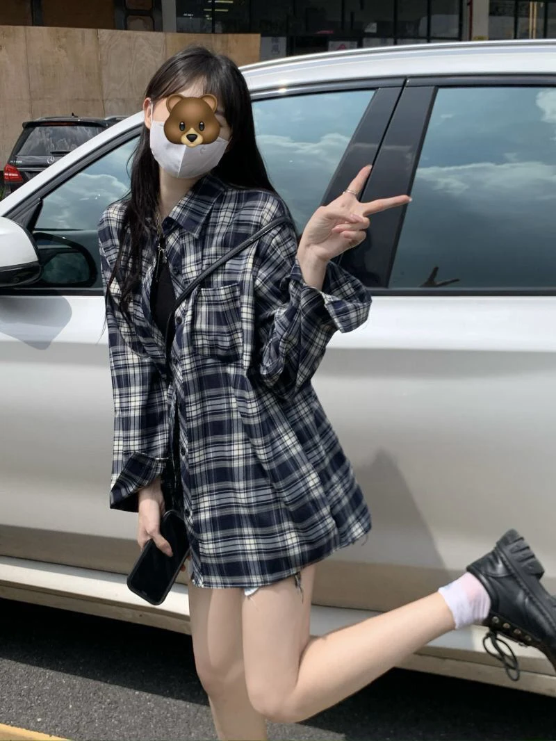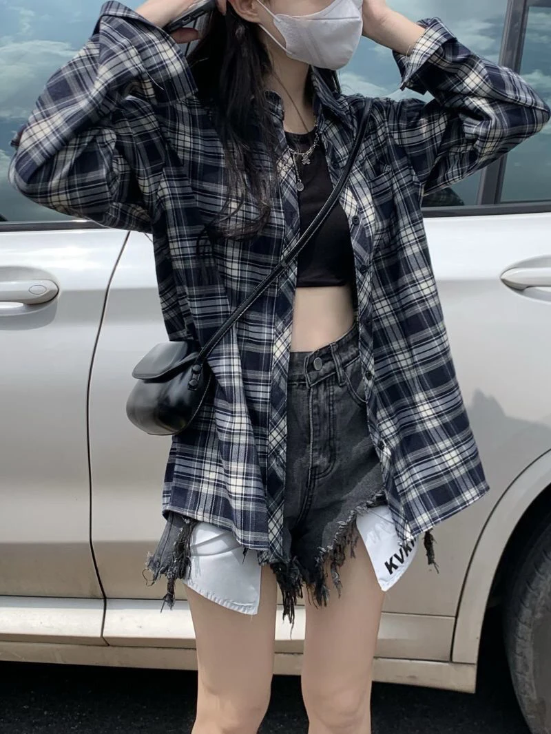 Women Plaid Shirt Korean Casual Harajuku Y2K All Match Loose Blouse Summer Fashion Hot Sweet Long Sleeve Ladies Top