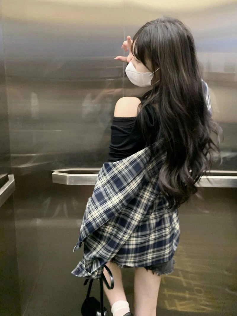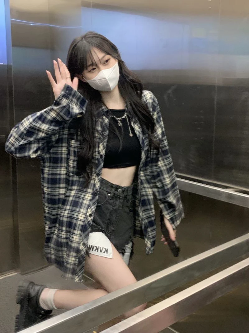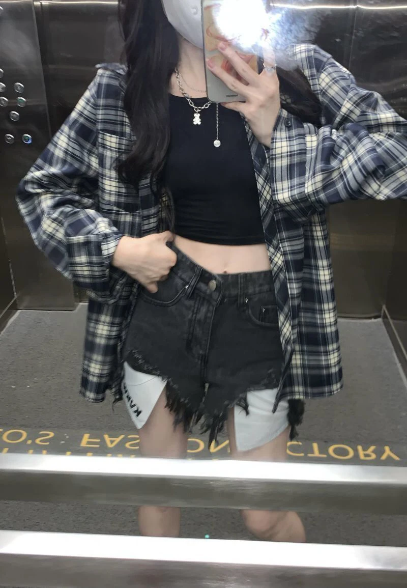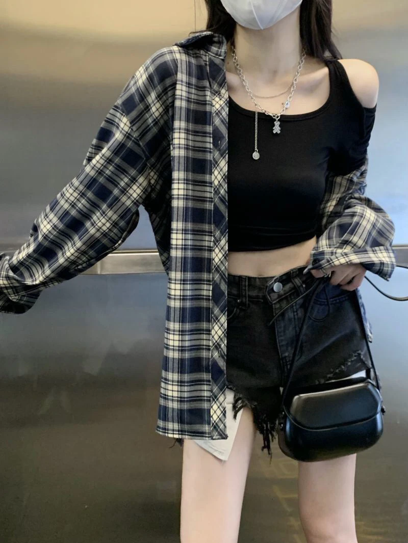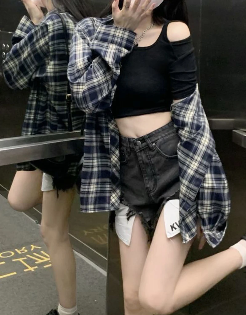 Women Plaid Shirt Korean Casual Harajuku Y2K All Match Loose Blouse Summer Fashion Hot Sweet Long Sleeve Ladies Top