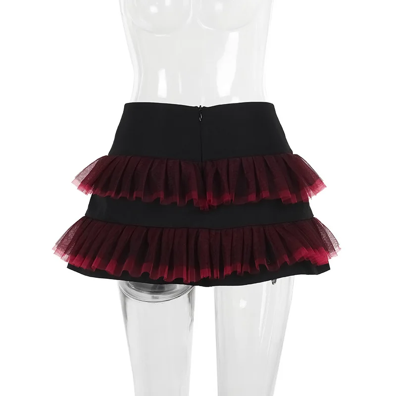 Y2K Gothic Red Lace Mesh Patchwork Mini Skirt Sexy Vintage Zipper Ballet Lolita Short Skirts Women Girls New Fashion Skirt