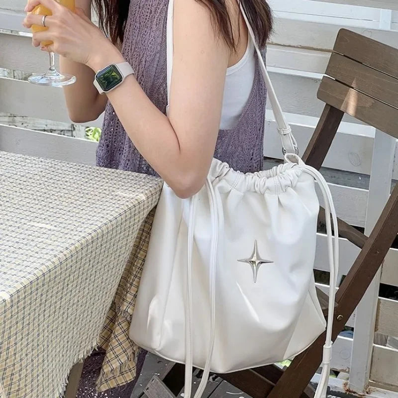 Y2K Korean Vintage Goth Black Hobo Tote Bag Aesthetic Star Girl Purse Handbag Shoulder Crossbody Messenger Cross Body Bags Women