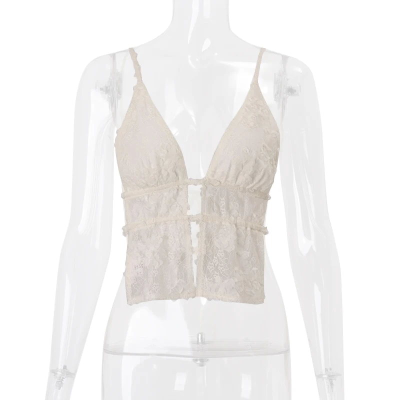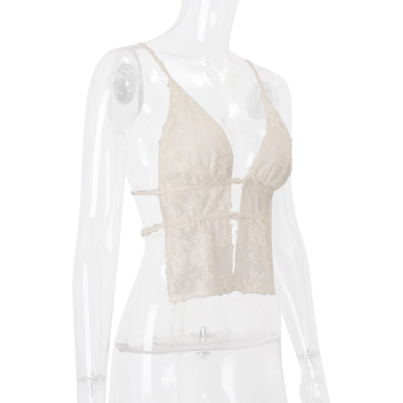Y2K Lace Vintage Backless Sexy Off Shoulder Strap Top Sweet Cute Casual Vest Summer Party Fashion Streetwear Crop Tops