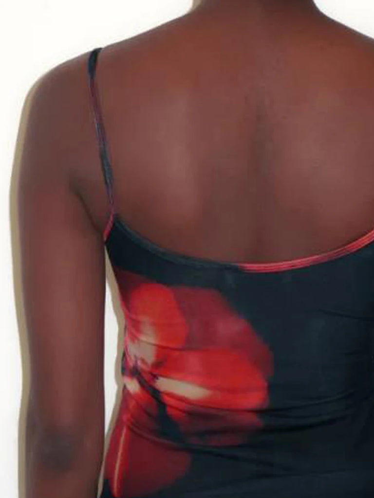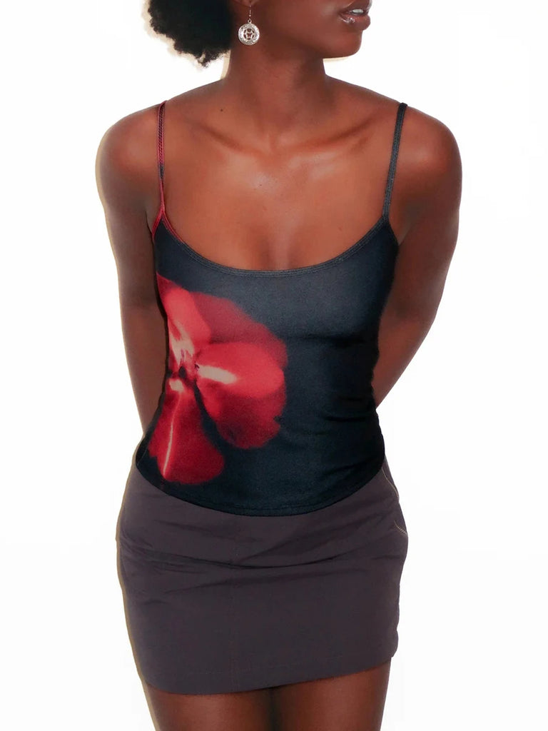 Y2k Sleeveless Crop Tank Tops Women Sexy Low Square Neck Camisole Spaghetti Strap Backless Aesthetic Graphic Cami Black Floral